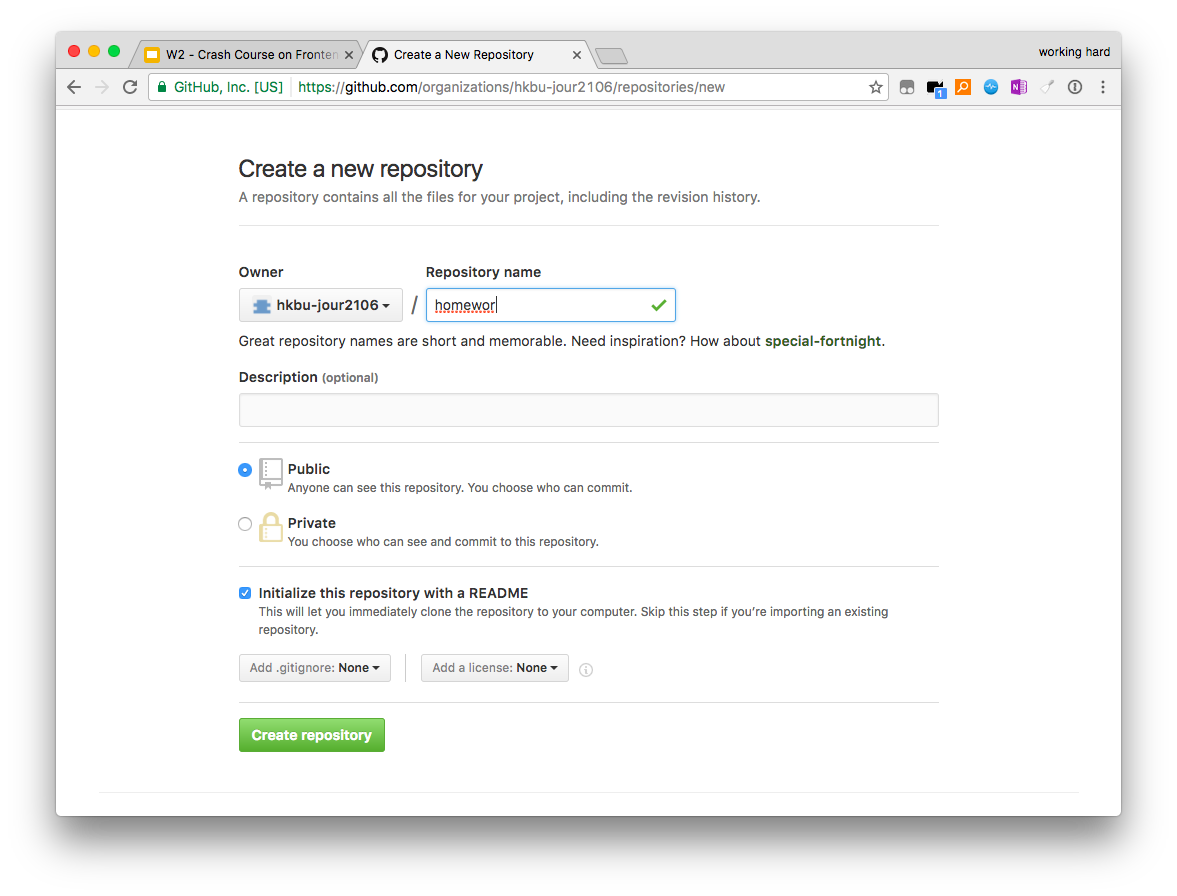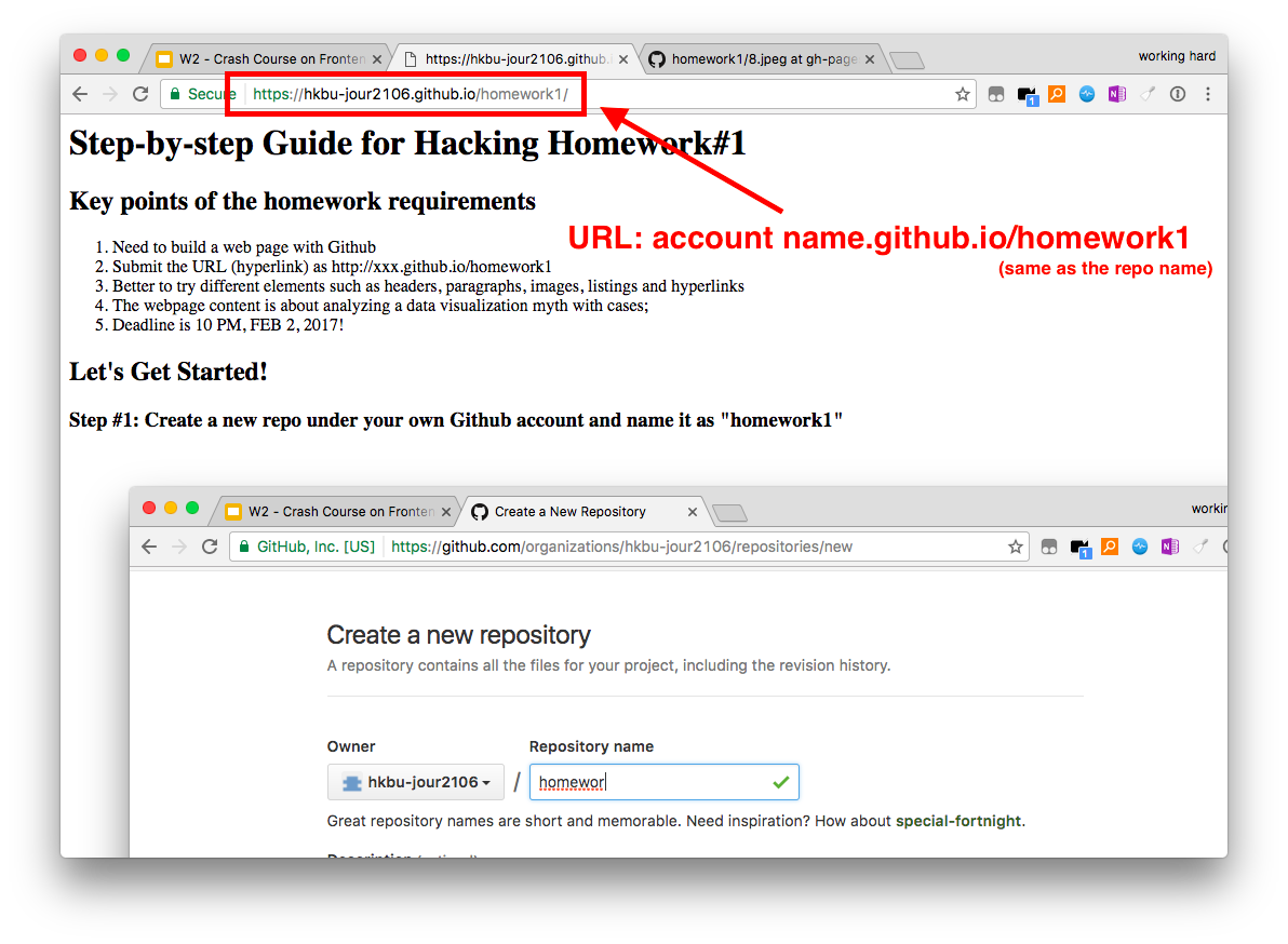 After finish the coding part, you can find your webpage from "accountname.github.io/homework1".